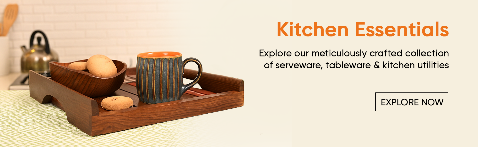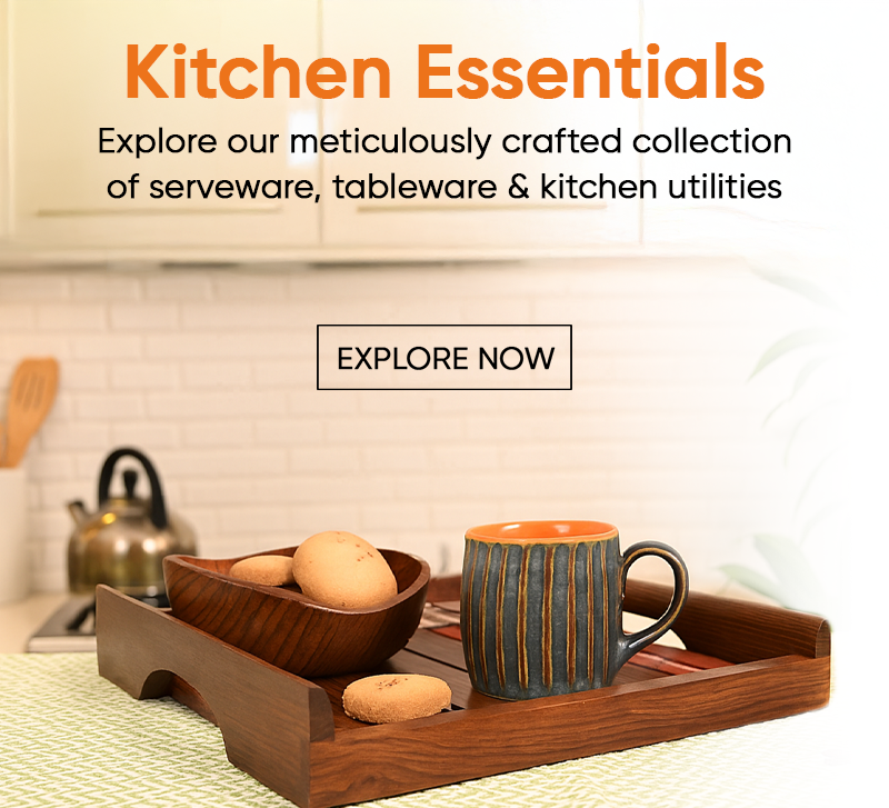 Coffee Mugs | Storage Jars | Dining Table | Tealight & Candle Stands | Wall Decor & Shelves | Pouffes & Recamiers | Wooden Cutlery | Coasters & Trivets | Beer Mugs | Spice Organizer | Earthen Cups & Kullads | Side & End Tables | Lounge & Rocking Chairs | Diwans & Couches | Trays & Platters | 3 Seater Sofa