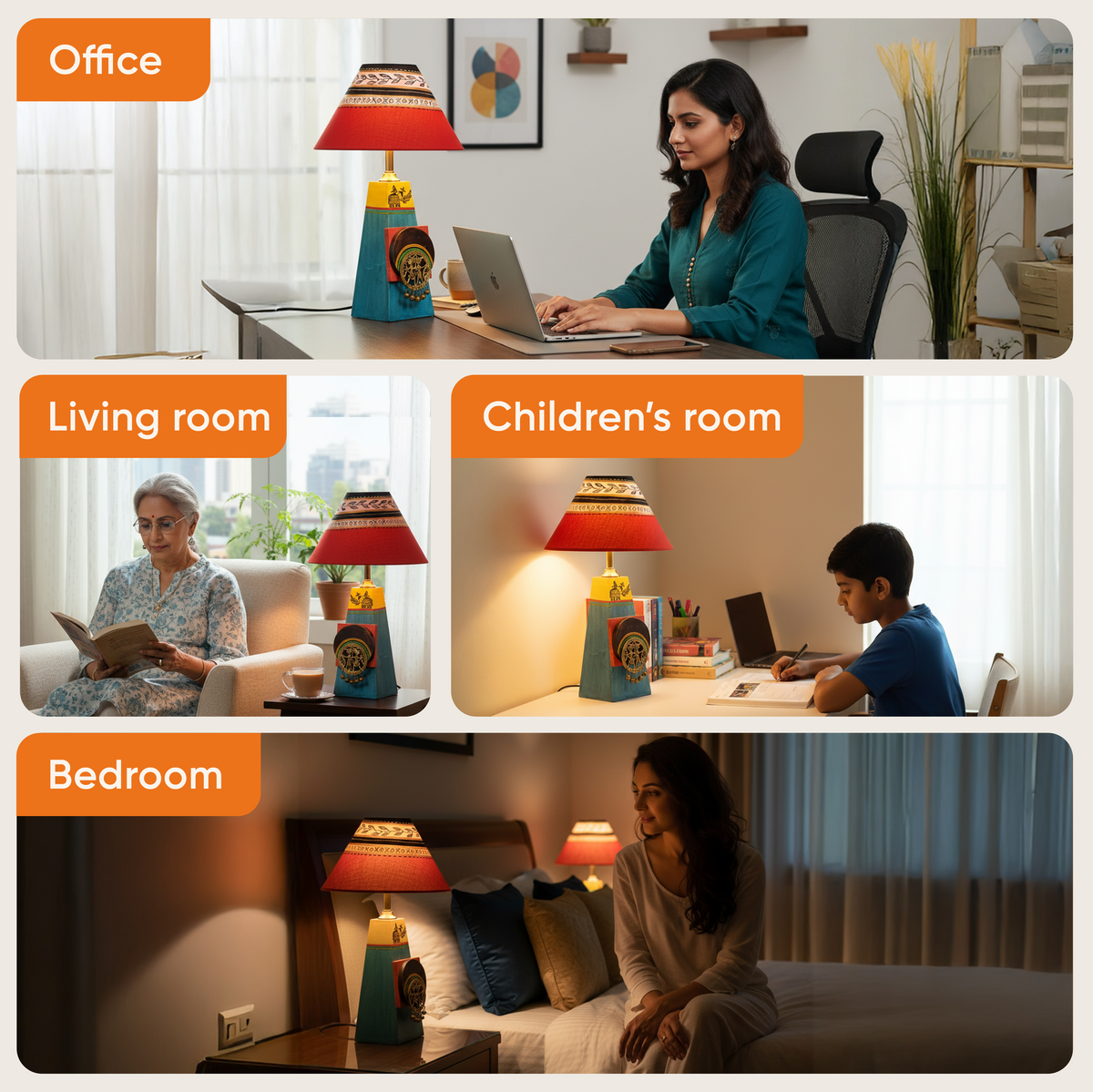 This handcrafted Wooden L is exquisitely created for you by our master craft persons. Fine Dhokra painting just adds a distinct aura to this Object of Desire. Red Shade is subtly matching in style. Place anywhere in your living space and it becomes the cynosure of all eyes.
