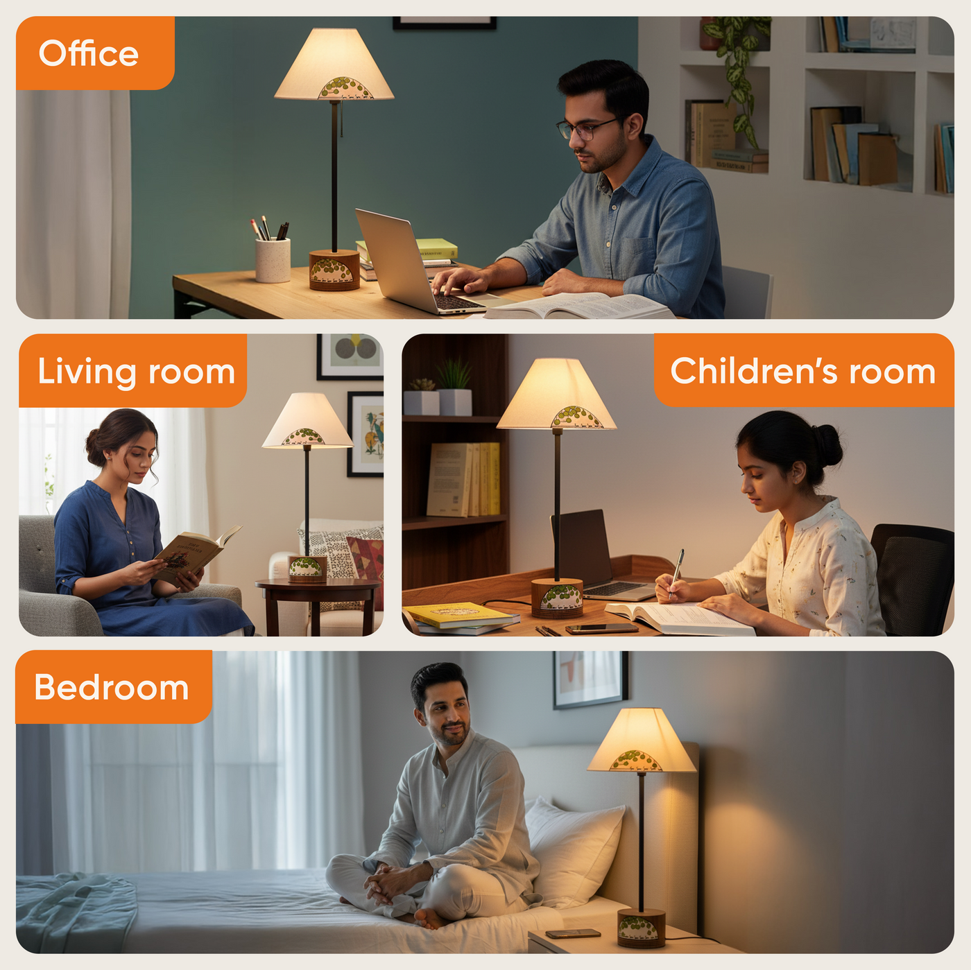 Illuminate your living space with the enchanting Artisan Glow, a handpainted wooden table lamp that exudes elegance and artistic charm. Crafted with precision, this exquisite lamp features intricate handpainted designs that showcase the mastery of skilled artisans. Each brushstroke reveals a captivating interplay of colors and patterns, creating a mesmerizing visual display. The wooden base adds a touch of natural warmth and complements the handpainted artwork flawlessly. Place Artisan Glow on your bedside table, desk, or any surface in need of ambient lighting, and let its soft glow fill the room with a warm and inviting ambiance. With its unique blend of functionality and artistry, this handpainted wooden table lamp becomes a true conversation piece, elevating your decor and reflecting your appreciation for craftsmanship. Embrace the captivating allure of Artisan Glow and bask in the artistic glow it brings to your living spaces.
