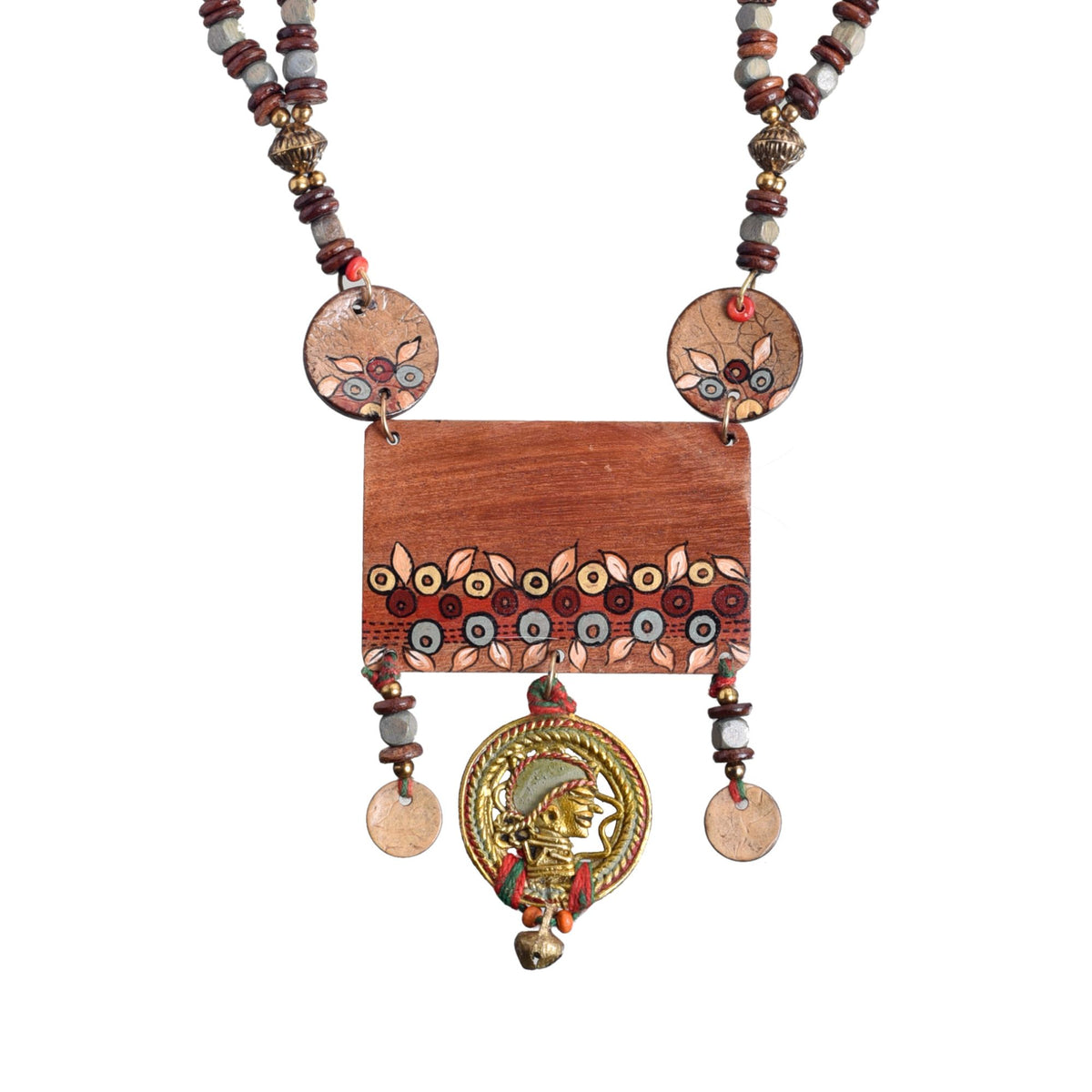 Rustic Charm: Handcrafted Wooden Necklace with Brass