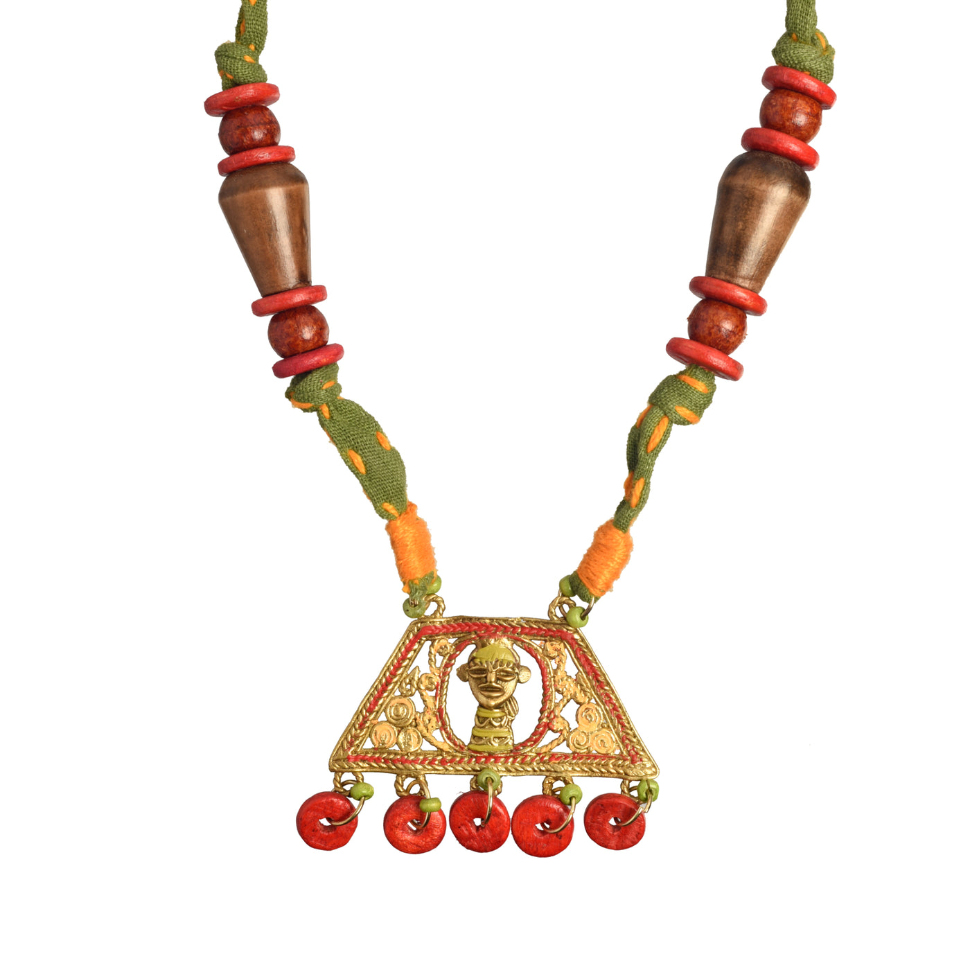 The Empress House Handcrafted Tribal Dhokra Necklace in Forest Green