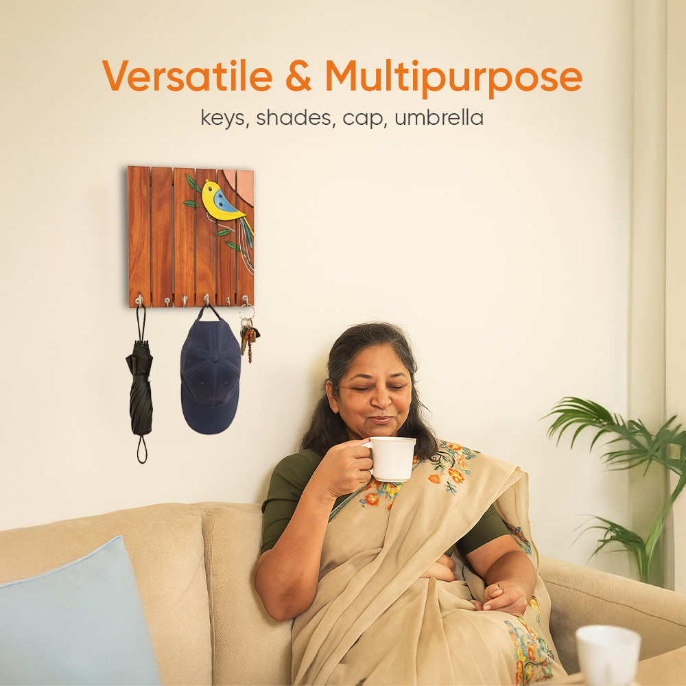 Add a cheerful pop of color to your walls with the Robin Hand-Painted Wooden Key Holder. Featuring a vibrant bird motif inspired by nature, this wall-mounted key hanger is not just practical but also an art piece in itself. Made from durable wood and finished with fine hand-painted details, it�s perfect for keeping your keys organized while adding a touch of handcrafted elegance to your homedecor.