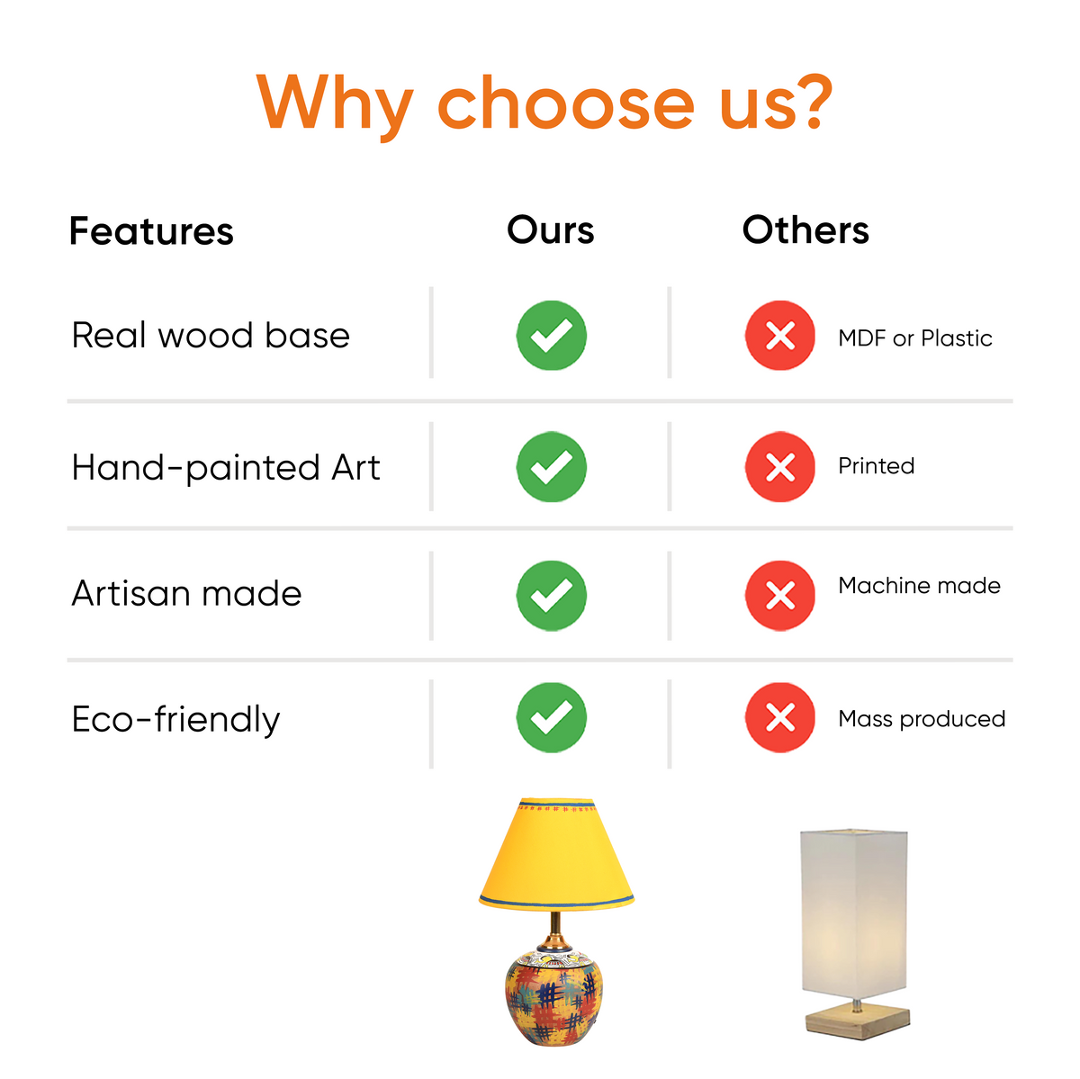 Product Size (LxBxH): Lamp Base - 13.9x13.9x12.7, Lamp Shade - 20.3x20.3x13.9, TH - 31.7 (All Dimensions in CM)